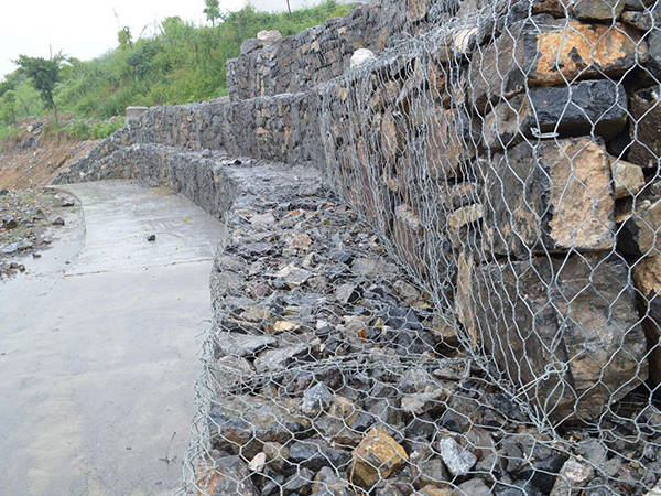 網(wǎng)箱是指用重型六角網(wǎng)作的箱型網(wǎng)籠,因此有稱之為“石籠網(wǎng)或者石籠網(wǎng)網(wǎng)箱”,歐洲也叫格賓網(wǎng),石籠網(wǎng)箱。石籠網(wǎng)箱在施工現(xiàn)場(chǎng)經(jīng)石頭填充,構(gòu)成具有柔性、透水性及整體性的結(jié)構(gòu), 如擋墻、河道襯砌、堰等支擋的防沖蝕工程。 石籠網(wǎng)箱由間隔1米的隔板(雙絞合六邊形金屬網(wǎng)片)分成若干單元格,為了加強(qiáng)石籠網(wǎng)箱結(jié)構(gòu)的強(qiáng)度, 所有的面網(wǎng)板邊端均采用直徑粗的鋼絲??刂坪鸵龑?dǎo)河流及洪水泄洪壩、導(dǎo)流壩巖崩防護(hù)、防止水土流失、大橋保護(hù)、固土結(jié)構(gòu)、海濱防御工程、港口工程和擋土墻道路防護(hù)。