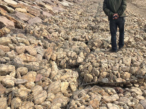 5.放置:綁好后,用機器小心將塞克格賓一個一個或兩個兩個的吊放到恰當位置。為了保證質(zhì)量,石籠網(wǎng)縫邊、組裝時應用粗的邊絲和綁絲。